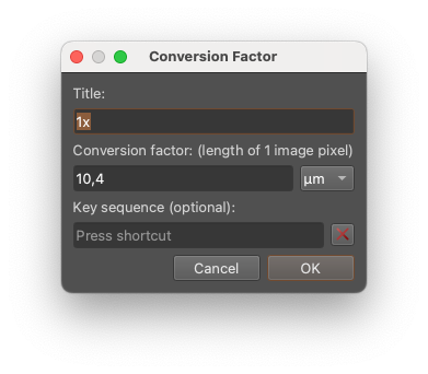 After activating the conversion factor the length of all scale bars in the current image is recalculated.