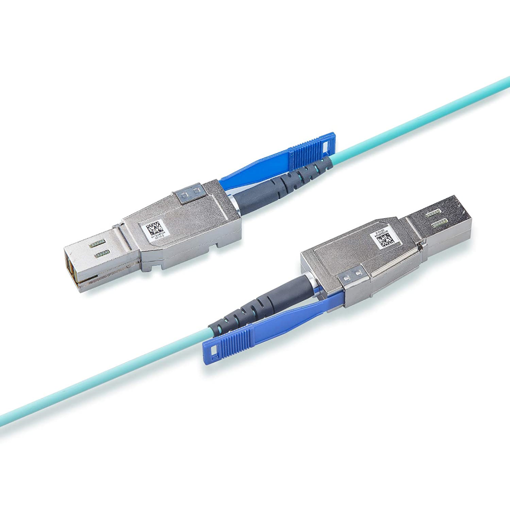 Both of these can offer 5m to 100m, with fiber MTP trunk (PCUO type) of cable or SFF-8644 cable.