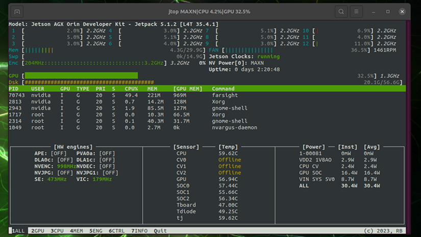 Picture 5. jtop Linux application to see Orin stats